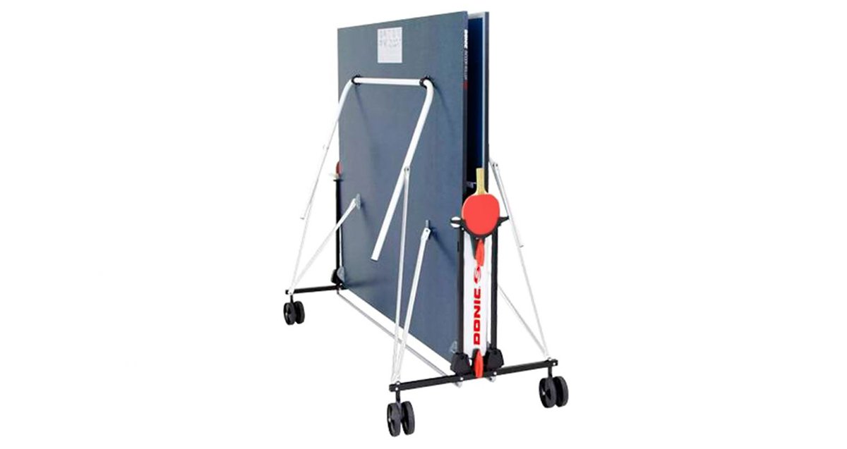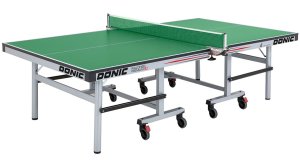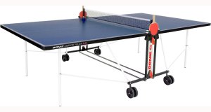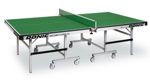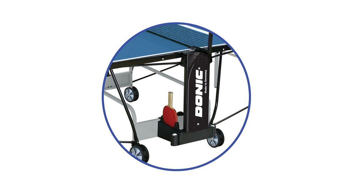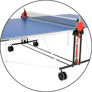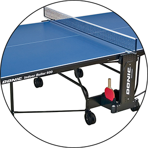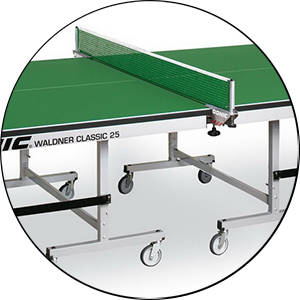 використовується Стільніця з висококласної водостійкого меламіну товщиною 4 мм або 6 мм. Вона покрита антибліковим покриттям синього Коліра і оснащена 36-ти мм або 50-ти мм метталіческіе оконтовку, для поліпшення відскоку м'яча.